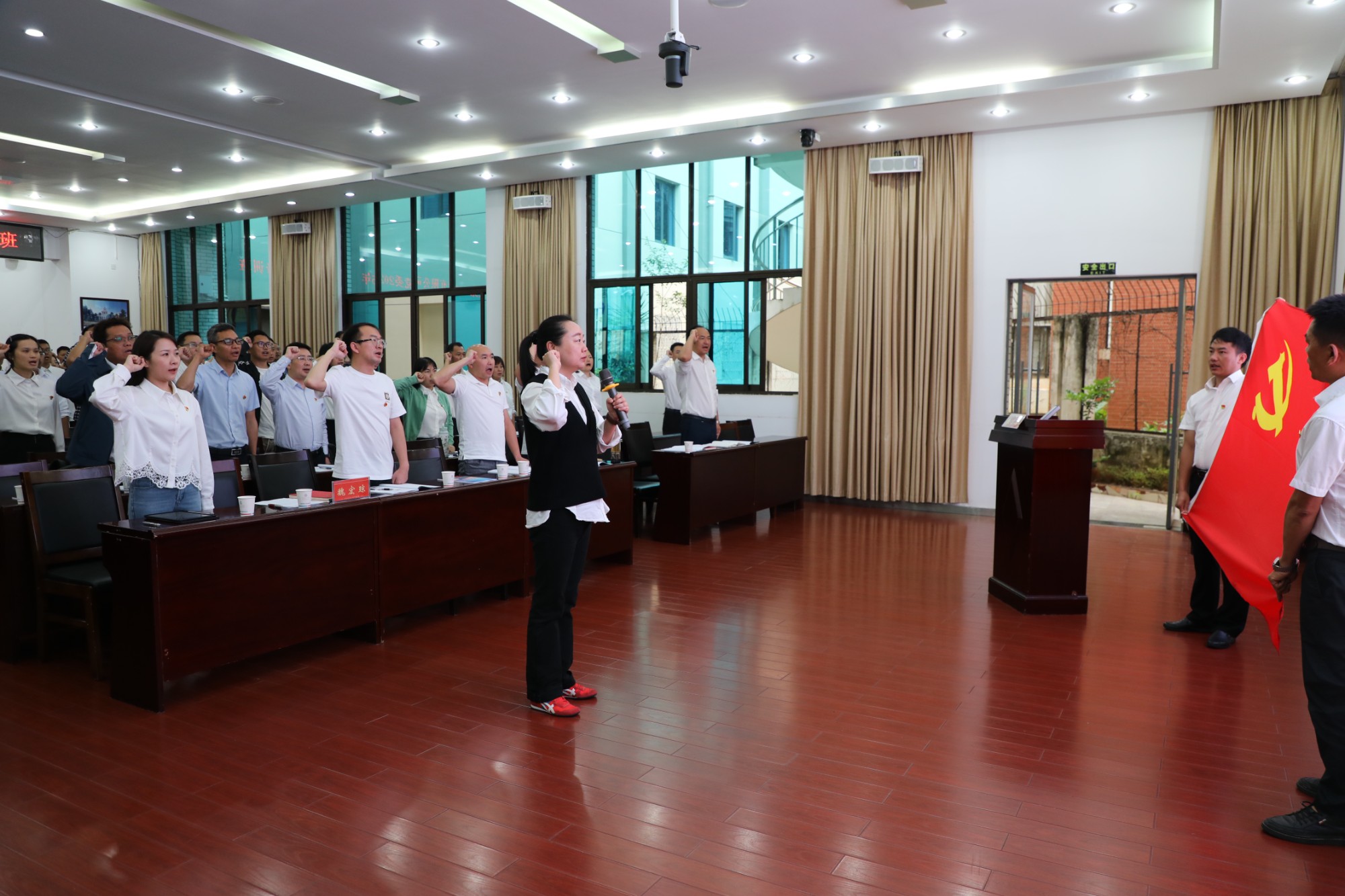 開班儀式上,全體參培人員共同唱響了《中華人民共和國國歌》,魏宏瓊帶領全體參培黨員重溫了入黨誓詞,并作開班動員講話。
