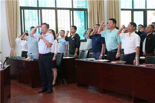 上午9:00,重溫入黨誓詞后,邢儒民以從學習《習近平新時代中國特色社會主義思想學習綱要》入手,結合5G技術推廣、中美貿(mào)易戰(zhàn)等近期關注度高的事件,通過產(chǎn)生背景、“八個明確”、十四條基本方略、馬克思主義思想方法和工作方法四個方面為大家解讀習近平新時代中國特色社會主義思想。他說,黨員干部學習理論知識要做到常學常新,身在組織要找準自己的定位,發(fā)揮作用。提到黨支部規(guī)范化建設,他要求,各黨支部要消除思想誤區(qū),積極主動按標準推進此項工作,公司黨委將適時通過自檢自查、交叉檢查、隨機抽查等方式檢查工作效果。