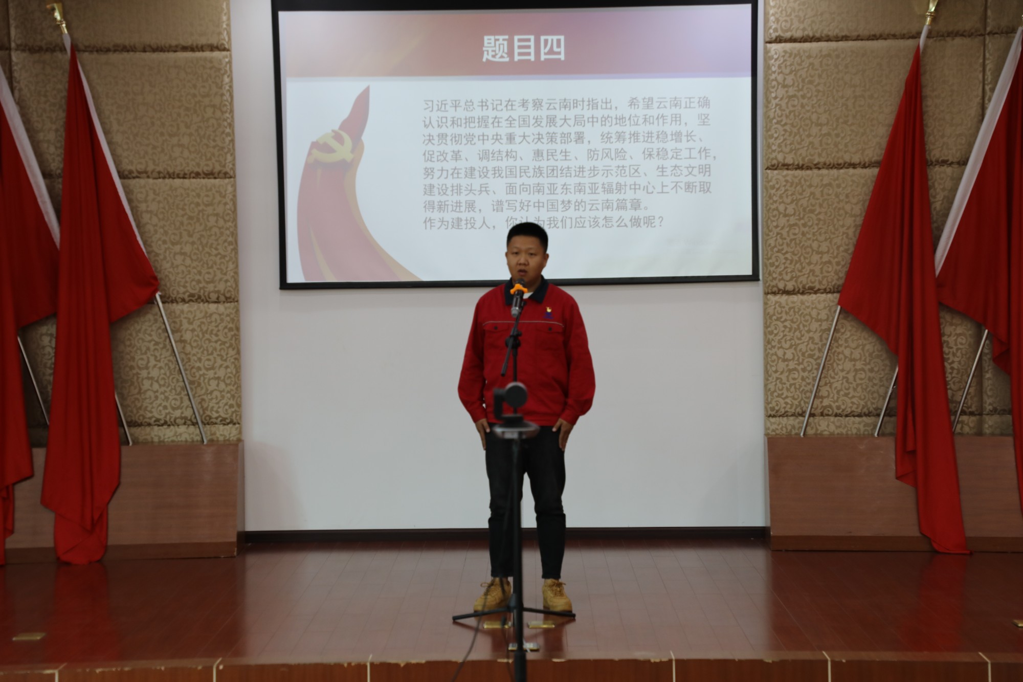 6月7日下午,由公司黨委主辦,公司工會、團(tuán)委承辦的“喜迎二十大 建功新時代”主題演講比賽決賽在二樓會議室舉辦。本次比賽特邀云南省演講學(xué)會副會長、碩士生導(dǎo)師、演講教育培訓(xùn)專家馬克強(qiáng)教授作為專業(yè)評委,公司黨委委員、工會主席胡云紅,公司年輕副總經(jīng)理、項目總承包部黨支部書記、經(jīng)理龍為華,公司董事會秘書、戰(zhàn)略發(fā)展部經(jīng)理趙高仲,安全總監(jiān)羅雪剛出席比賽并擔(dān)任評委。