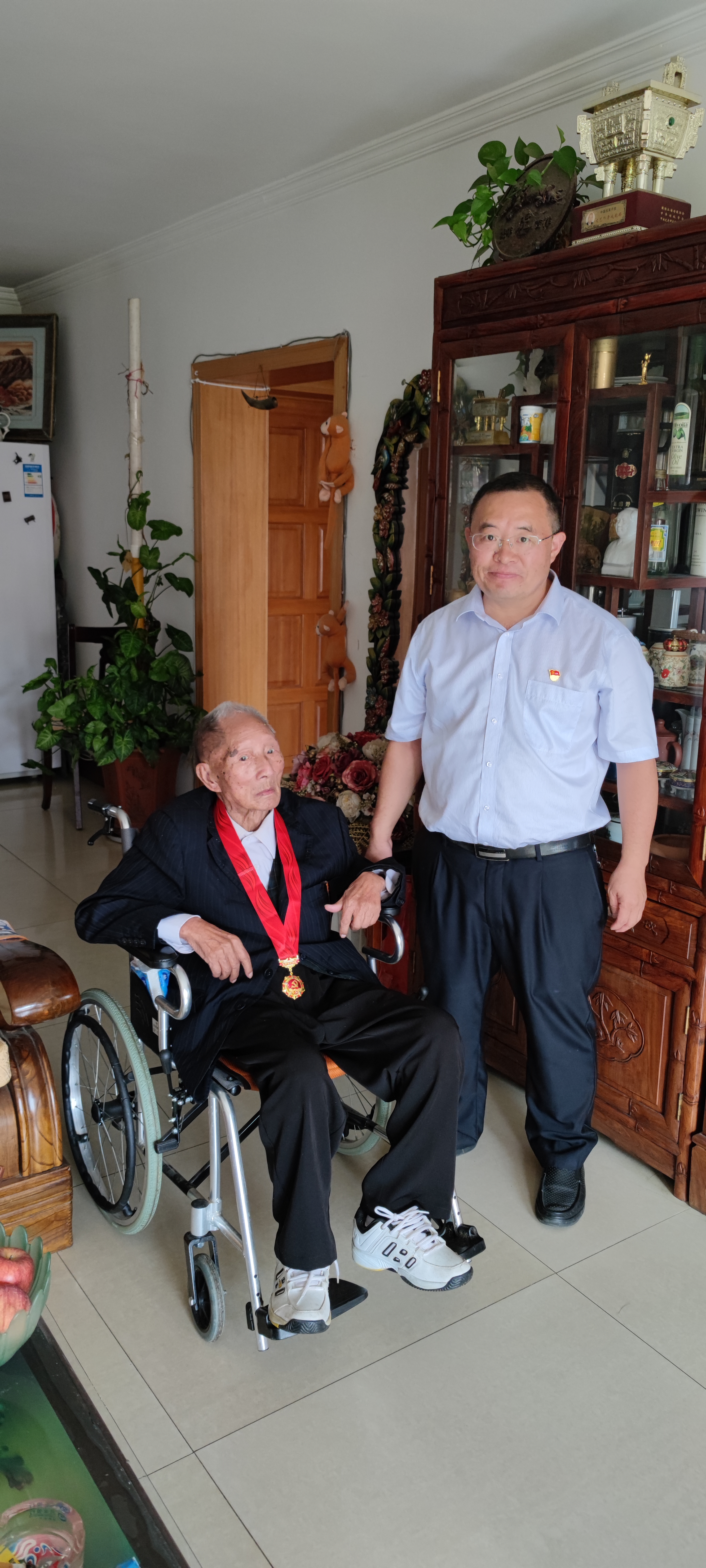胡云紅到昆明市冶金醫(yī)院慰問老黨員鄭志運(yùn)。鄭志運(yùn),1947年加入中國共產(chǎn)黨,至今已有74年黨齡,他曾參加過淮海戰(zhàn)役、渡江戰(zhàn)役、西南戰(zhàn)役等,其中他印象最深刻的是18歲參加淮海戰(zhàn)役。1949年曾榮獲過二等功。胡云紅仔細(xì)詢問了鄭志運(yùn)的身體狀況,并介紹了公司各項(xiàng)指標(biāo)及公司發(fā)展情況。胡云紅囑咐鄭志運(yùn)保重身體,積極配合治療。