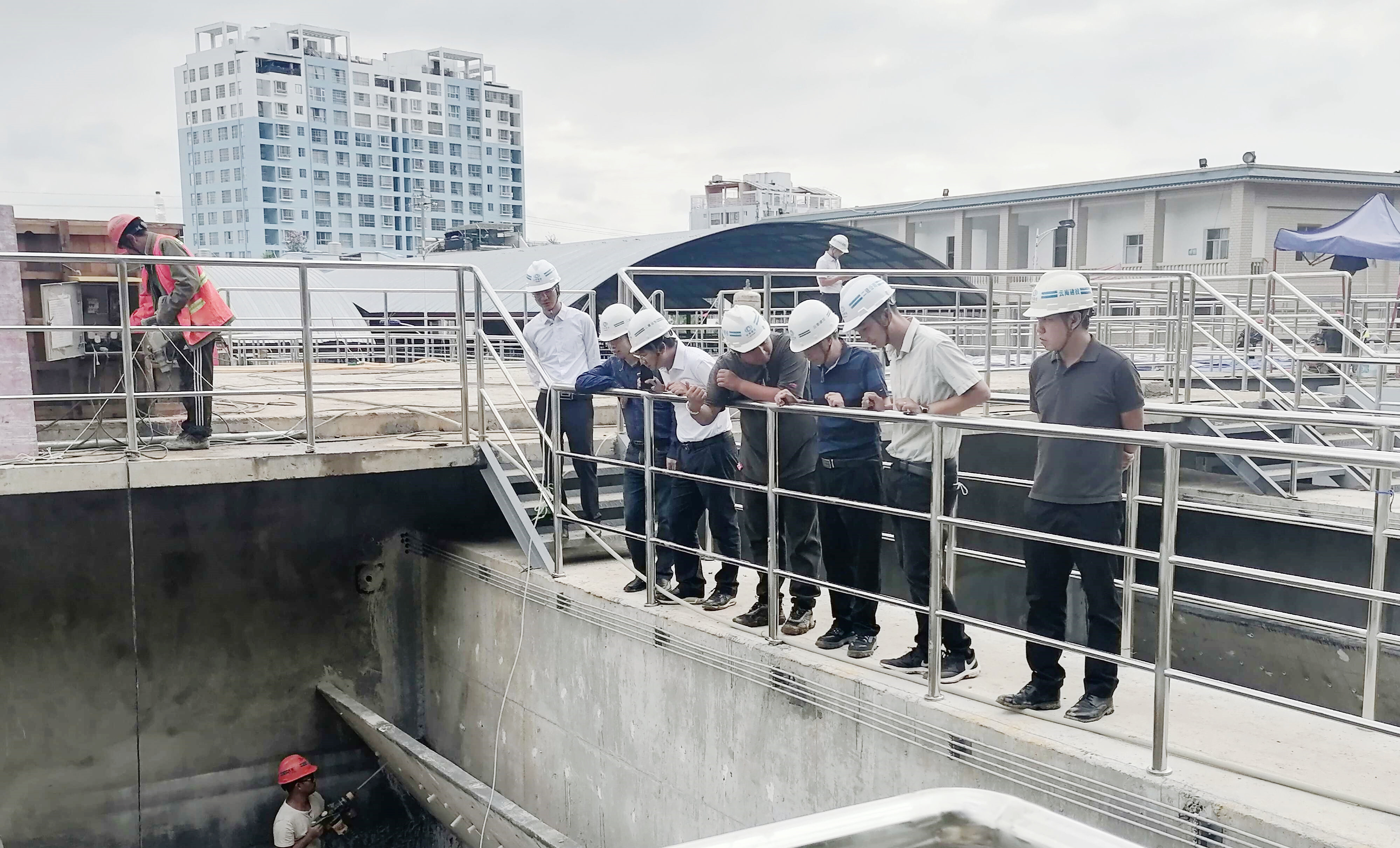 陳定華、萬(wàn)向遵一行深入到施工現(xiàn)場(chǎng)進(jìn)行查看,實(shí)地了解項(xiàng)目施工情況,對(duì)土建及安裝單位的安全及現(xiàn)場(chǎng)進(jìn)度、質(zhì)量的管控進(jìn)行檢查。陳定華對(duì)項(xiàng)目團(tuán)隊(duì)做出的努力給予了肯定,并指出,一是在施工過(guò)程中,要嚴(yán)把安全關(guān)、質(zhì)量關(guān),加強(qiáng)施工前監(jiān)督管理工作。二是根據(jù)施工合同要求,做好進(jìn)度控制工作,嚴(yán)格落實(shí)糾偏措施。三是落實(shí)好集團(tuán)“四保一控一樹(shù)”要求,做好現(xiàn)場(chǎng)管控。四是加強(qiáng)項(xiàng)目團(tuán)隊(duì)建設(shè),注重人才培養(yǎng),切實(shí)提升項(xiàng)目綜合管理能力。五是三水廠擴(kuò)建是民生工程,要加快施工進(jìn)度,確保完成節(jié)點(diǎn),今年下半年文山市民不再為飲用水堪憂。