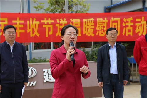 張弛對“中國農(nóng)民豐收節(jié)”的由來和省總工會開展此次活動的目的進行簡要說明。她提到,滇池明珠廣場二期建設項目一線的各位工友為呈貢新區(qū)的地標建筑付出了很多心血和汗水,她代表省總工會對大家建設美麗云南的辛苦付出表示感謝,她說,大家都是各自班組上的優(yōu)秀分子,希望大家把這種積極的態(tài)度和省總工會的祝福傳遞給班組上的其他工友,并祝福大家節(jié)日快樂,身體健康。