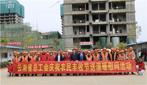 為慶祝第二個“中國農(nóng)民豐收節(jié)”的到來,認真貫徹落實以習近平同志為核心的黨中央關于“三農(nóng)”工作的指示精神,關心關愛建筑行業(yè)的城市建設者。9月25日上午,省總工會黨組成員、副主席張弛代表省總工會到公司滇池明珠廣場二期建設項目開展“慶祝農(nóng)民豐收節(jié)送溫暖慰問活動”。集團工會常務副主席楊金、公司黨委書記邢儒民參加活動。