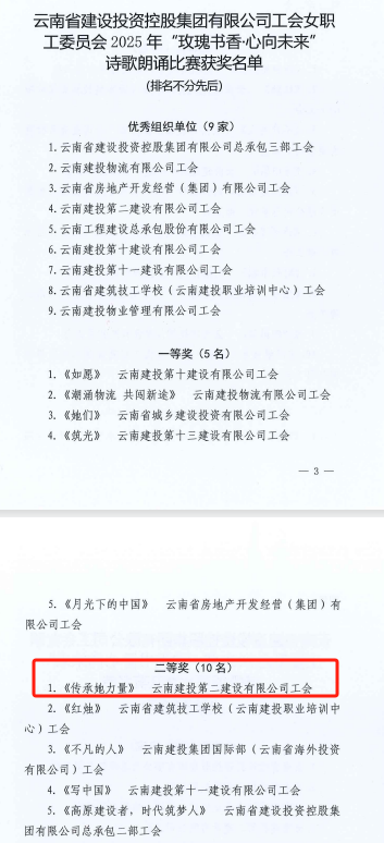 近日,集團工會公布了2025年“頌黨恩·詠經(jīng)典·傳家聲”親子誦讀活動及“玫瑰書香·心向未來”女職工詩歌朗誦比賽結(jié)果,由公司工會報送的視頻作品《祖國頌歌》《傳承她力量》從近百個作品中脫穎而出,分別榮獲一等獎、二等獎。